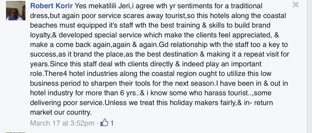Some girls interviewed about this story held a very different opinion. Some thought that there is no problem in wearing their traditional mahando and leso. However they are skeptical about leaving their chests exposed since men have in recent times proven capable of molesting even well-dressed women. If the tourism sector cannot be creative and find other ways of bringing back tourists, then they can as well close down.