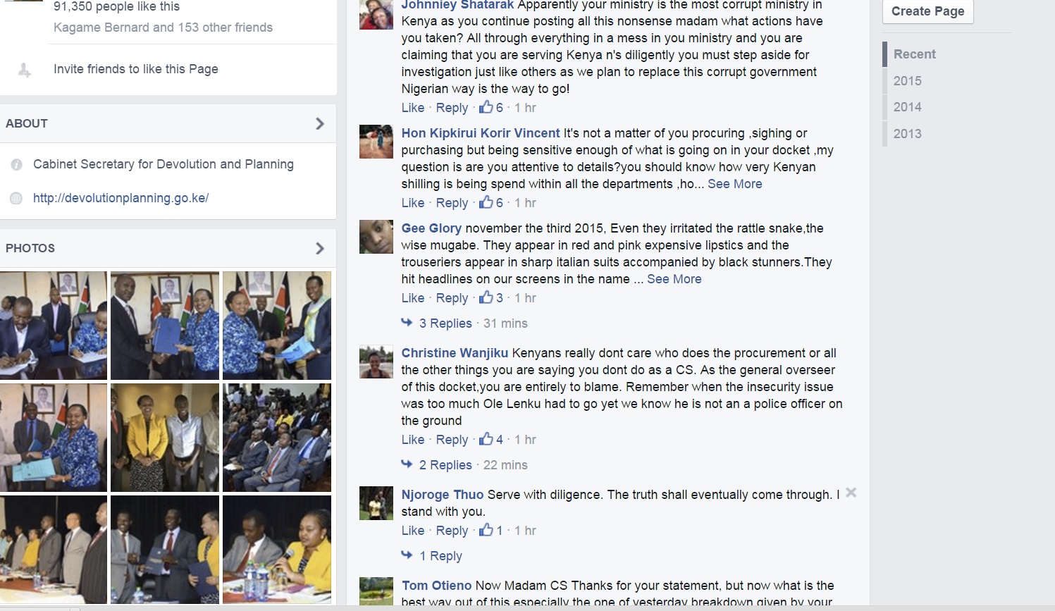 “…Yet the vicious unwarranted attacks continue. It’s amazing that whereas there are similar and more serious allegations of misuse of funds in many government departments there is never the personalized level of attack on CSs that has been directed at me. Surely this is no longer about the fight against corruption. It’s calculated evil, vindictive and ill intentioned.”