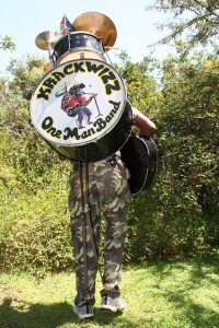 So instead of locking himself up in a closet he decided to go alone forming a one man band that would later see him get attention even from a corporation that is as big as Safaricom. But perhaps it is because he is so easy to notice. And that out of the way he does his art, or should we say “his thing” – he has more than ten music instruments that he connected together and that he carries on his back all the time during his performances.