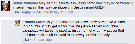 Kenyans on social media are of course known for their “out-there” sense of humour. Indeed some of these comments might just be innocent attempts to get a cheap laugh from a stranger. But the tone of most of the comments is such that it’s worth considering if indeed some Kenyans feel MPs are ripe to be slaughtered en masse by one of the most bloodthirsty terror groups on the planet.