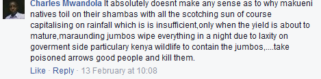 In his official Facebook page, the governor gave the national government and the KWS an ultimatum to offer a permanent solution failure to which the residents would take matters in their own hands.