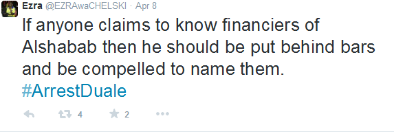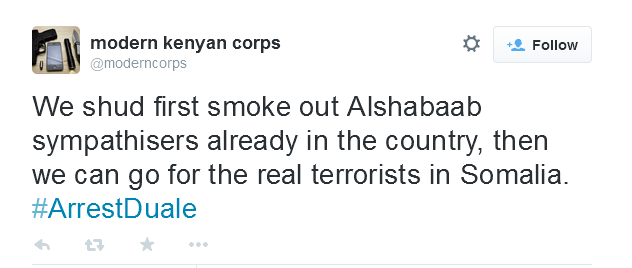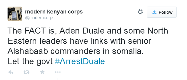 Kenyans on social media also did not spare the outspoken Duale for allegedly shielding terrorists. Under the hashtag #ArrestDuale, Kenyans on Twitter scolded the majority leader.