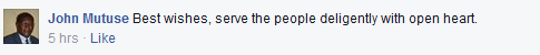 While Kenyans on social media criticized the appointment of Kalembe, Makueni residents led by the Governor Kivutha Kibwana took to Facebook to congratulate him.