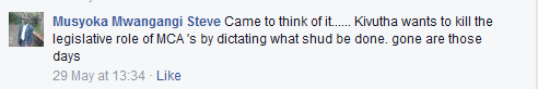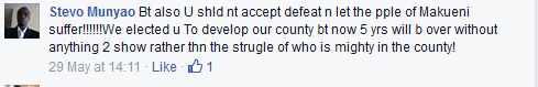 The Governor has however said in a post in his official Facebook page that he is not to blame for all the leadership wrangles. He sought to distance himself from the petition that the MCAs and the Kamba Council of Elders have accused him of engineering, by stating that the two arms of government have been put on trial by the people of Makueni.