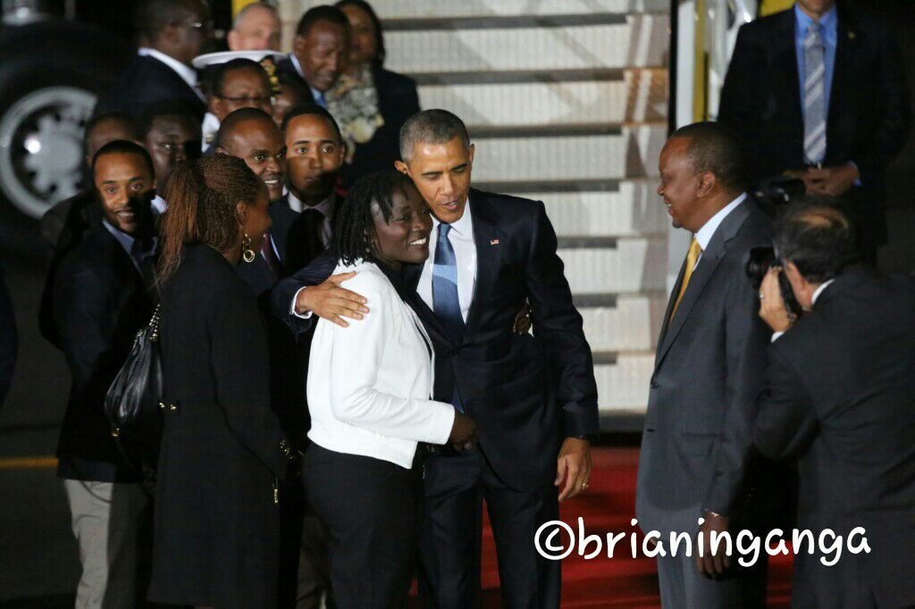 Among those that accompanied President Uhuru Kenyatta to the airport to receive President Obama included United States Ambassador to Kenya Robert Godec, Foreign Affairs and Internatioal Trade Cabinet Secretary Amb Amina Mohammed, her Principal Secretary Karanja Kibicho, Defense Cabinet secretary Amb. Raychell Omamo, Ministry of Interior and Coordination of National Government Cabinet Secretary Joseph Nkaissery and President Obama’s sister Auma Obama among others.