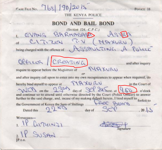 To start with the police officer missed the journalist’s name on the form, calling him Evans Barnabasa Asika instead of Evans Barnabas Asiba. This as it stands means as the police were to present their case in court on Wednesday 23 they were to present an accused person different from the one who was to stand in the dock.