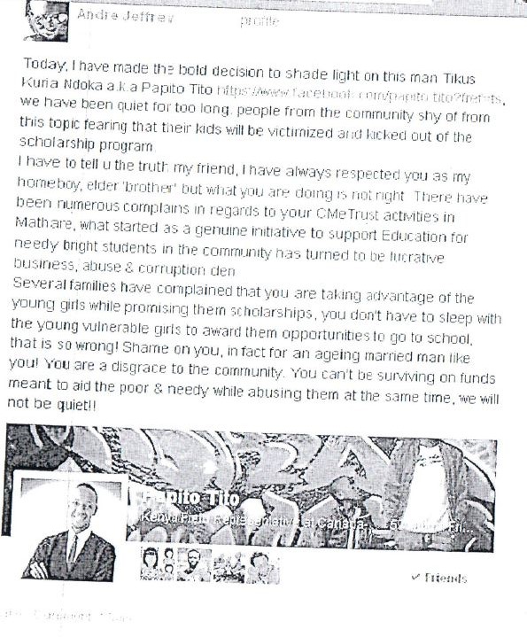 The case came about after Geoffrey Andare was sued by Titus Kuria for what he alleged was posting offensive messages about him on Facebook.