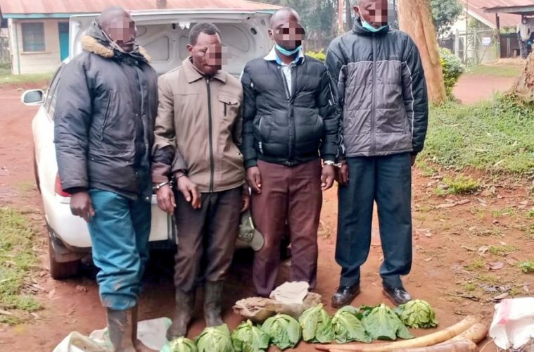 The four; Martin Mungai Nginya, 58, Peter Macharia Njuguna, 32, Edward Mwambura Kamau, 55 and 43-yr-old Samuel Njuguna Mwirigi were found in possession of 19 pieces of the jumbo tusks were arrested by a multi-agency team christened ‘Interpol Usalama 7’ which has been pursuing the notorious syndicate ambushed the suspects in two separate motor vehicles parked…strategically ready for transaction, a KBT 660T Toyota Allion and KAP 374V Toyota 100.